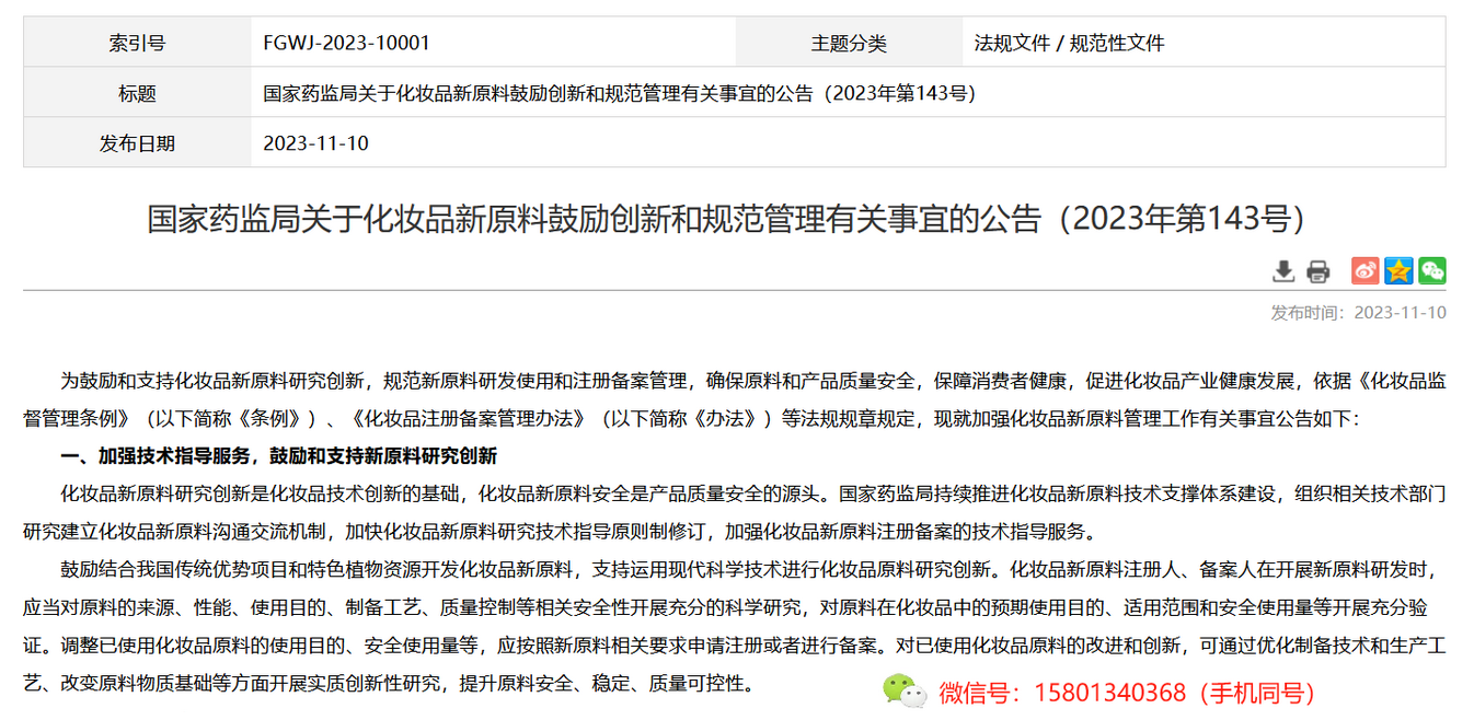 国家药监局将进一步加强新原料鼓励创新和监督管理工作,通过建立化妆品新原料沟通交流机制、发布技术指导原则等方式,对化妆品新原料的研发、使用和管理及时予以指导。