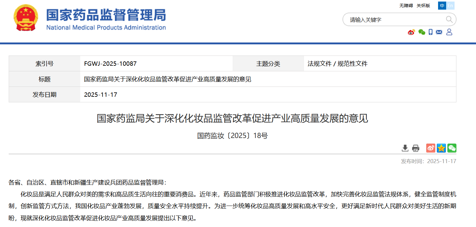 (二十)加强监管信息化建设。进一步提升化妆品智慧监管能力,推动化妆品监管全业务全流程数字化,涉企政务事项全环节全流程在线办理,优化升级化妆品监管APP,提升服务基层监管效能和公众科普服务水平。完善化妆品注册人备案人信息档案,强化数据汇集与治理,推进场景应用,充分发挥档案数据在监管中的作用。鼓励各省级药品监管部门加快智慧化转型,加强人工智能在化妆品备案、生产和经营监管等领域的应用研究,提升监管工作效率。