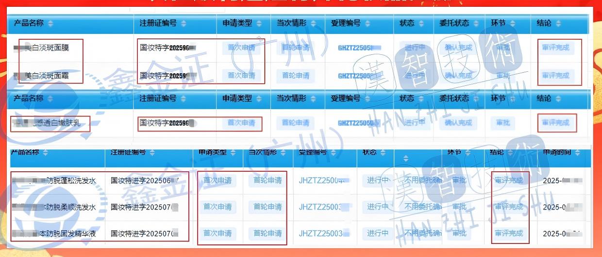 近日,鑫金证公司传来振奋人心的好消息——多款美白与防脱功效的产品,在国家药品监督管理局的严格审评中,一次性顺利通过特殊化妆品注册!